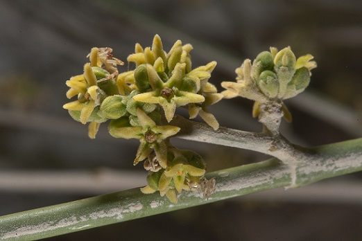 - Pale greenish flowers in small clusters