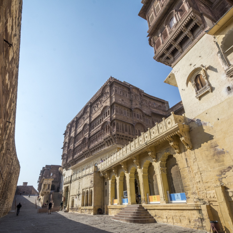 According to the legend, Rao Jodha displaced the hill’s sole human resident, Chidiyanathji, by soliciting help from the goddess Karni Mata, who is the patron deity of the Charan caste or hereditary bards who formed the retinue of the Rajput chieftains. While fleeing the old hillock of Bhakucheeria, Chidiyanathji cursed Rao Jodha and his descendants that the fortress would always remain short of power. To neutralise the curse and ensure that the new site proved propitious, Rao Jodha buried a man named Rajaram from the Meghwal community (historically an untouchable caste group) alive at the foundations of the new fort, who allegedly sacrificed himself voluntarily. This spot is now named Rao Jodha Falsa and, even today, members of the erstwhile royal family of Jodhpur present a gift to the descendants of the Meghwal family every year on the anniversary of the foundation of the fort. The fort was named Mehrangarh or the Fort of Mihira, the Sun God, to honour their mythic clan progenitor. Many of the Thakurs, or the feudatories of Marwar, also trace their descent to Rao Jodha, and, thus, the Rao (or chief of the Rathores) was never quite considered a sovereign based on divine kingship but was rather treated as a first among equals.