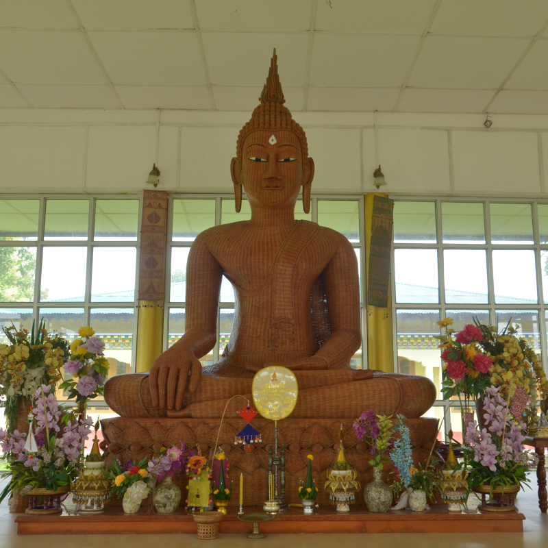 Most of the images of Buddha are seated either in bhumisparsa (earth-touching) mudra or dhyana (meditating) mudra. Though less common, there are also standing images of Buddha found in some of the Theravada monasteries of Arunachal Pradesh. The monasteries are also populated with large-scale Thai Buddha sculptures donated by Buddhist organisations of Thailand; these sculptures are made of brass in the Sukhothai style of the erstwhile Thai kingdom of the same name. They are identified by the flame on top of the Buddha’s head, his fine curled hair, curved eyebrows, broad shoulders and a narrow waist. Burmese marble sculptures, smaller in size to the Thai ones, are also frequently found in the monasteries. The Burmese Buddha images are mainly in Mandalay style and are identified by the broad band across the Buddha’s forehead; these sculptures are seated in bhumisparsa mudra wearing a monastic robe that leaves the right shoulder bare. In addition, we see wood and bamboo images; made by native artists with locally available materials—sometimes in collaboration with artists invited from Myanmar—these images are examples of excellent craftsmanship.