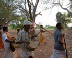 On that night and the next day, the transgender women may engage in sexual activities to mark the completion of marriage. On the 16th day, the image of Aravan is taken out in a procession. During this procession, followers of the Aravan and Draupadi cults along with onlookers gather for their deity’s darshan, and participate in pulling his chariot. The newly married transgender women gather at a designated ‘mourning ground’ called azhukalam. When the procession reaches there, the thick floral garlands and accoutrements are removed from Aravan’s effigy. This symbolises the removal of Aravan’s flesh during his sacrifice on the battlefield. After his death, his widowed partners collectively mourn by removing their thalis (mangala sutra) and smashing their bangles. They cry aloud, beat their chests and lament their widowhood, before bathing and changing into fresh white sarees as Hindu widows commonly wear. It should be noted that this widowhood is only symbolic and temporary, and the transgender women return to their usual colourful garments after a short period of time. They can return next year to repeat the marriage ritual.