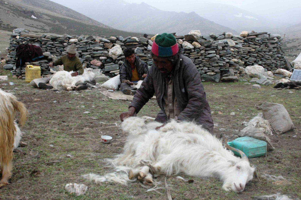 From the looms in Kashmir to haute couture boutiques the world over, the warm undercoat of pashmina goats is a highly valued luxury fibre.  Herded by nomadic pastoralists in Changthang, sometimes at altitudes as high as 18,000 feet in icy cold winds, the trade in the fibre these goats yield is beset by controversy and intrigue. Setting the price involves much speculation and protracted debates and deals are often struck even before the fibre has been combed off the goat’s back.