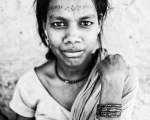 In recent years, due to human migration, deforestation and enforcement of the Forest Protection Act, the Baiga tribe slowly moved out of forest lands and are now living close to small towns and cities. This displacement from their ancestral environment has had an adverse effect on their culture and traditions. During my travels I observed that the Baiga women who live closer to the cities do not bear the elaborate traditional tattoos. Most of them did have a tattoo on their forehead; but instead of the lines and patterns on their arms and legs, they had smaller motifs which seemed to be influenced by the Gond tribe. The only place where I found Baiga women with their entire bodies tattooed was in the interior villages in Dhindhori district. It is only the older generation who still carry these marks. I asked a woman why her daughter isn’t tattooed. I was told that she won’t get tattooed as she goes to school and the teachers and children who come to the school from other tribes and villages make fun of her. In most of the tattooed tribes, with the death of its older members, the skills and oral memory associated with tattooing will also be lost forever.