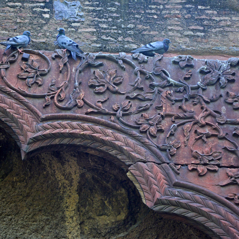 Her wealth enabled her to patronize works of learning, particularly Sufi works, such as commentaries on Maulana Rumi’s Masnavi (Schimmel 2005:151–53). She was also responsible for commissioning numerous architectural projects. In Shahjahanabad, the most important of these was the beautiful square known as Chandni Chowk. This lay on the broad street leading westwards from the palace complex. In the middle of this street ran a stream of water, and at this square it broadened to form a pool. To the north of the square was a grand sarai, where prosperous traders used to stay. To the south of the chowk was a hammam, or public bath. The chowk was a bustling public and commercial space, with many shops and coffee houses. After the Revolt of 1857, the British demolished the chowk and the buildings around it. A town hall was later built at the site of the sarai.