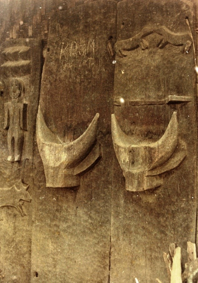Nagaland as a whole, is vibrant with a rich architectural wood craft tradition which has its roots in an animistic past: a lost culture of magnificent huge wood-carved building façades and village gates with the mithun or Indian bison horns and head dominating all else with their immense visual appeal. The mithun head and house horns were the most powerful wood-carved elements, especially among the Angami and Chakhesang and to a lesser extent, the Ao and Sumi (Sema) tribes. However, among the Eastern Nagas like the Konyak and Chang, woodcarving lent itself more to human figurines and heads as fertility symbols and hornbill motifs which had a special significance in the social hierarchy of the time. The hornbill was the elite symbol of the Ang or village chief, who enjoyed a divine status in the Konyak tribe who inhabit Mon district lying at the northern tip of the state.