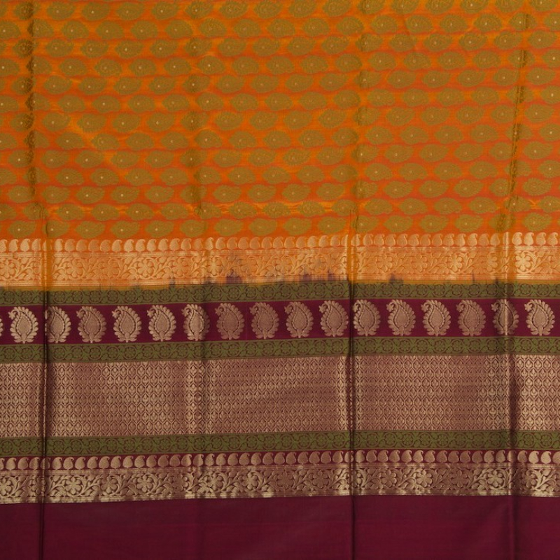 Pit looms can be seen even today, though jacquard attachments with punched cards (an early 19th-century French invention) have been incorporated to speed up production. Simultaneously, powerlooms, which run on electricity, are also in use. These facts point to the weaving community’s openness to both visual vocabularies and technologies from outside. Similarly, artificial silk, lurex zari and chemical dyes have found their way to Banaras, expanding the colour palette and making the brocades more affordable thereby democratizing a fabric that was once accessible only to an elite group of people. Modern materials have also been accompanied by new technologies such as metallic transfer-printing and ‘brasso’ (devorée), which were introduced in the latter half of the 20th century.[2] The fabrics produced with these materials and processes seek to mimic the Banarasi look—they self-consciously borrow motifs and colours—in a contemporary way. In the shrines dotting the banks of river Ganga, one can spot gods and goddesses clothed in offerings of metallic printed fabrics, almost suggesting divine approval for technological innovations!
